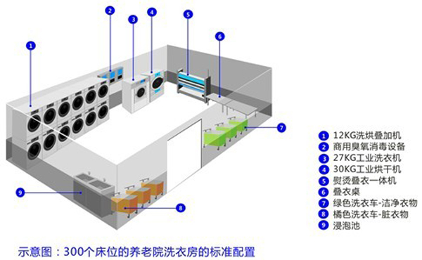 目前在我國(guó)很多養(yǎng)老院機(jī)構(gòu)還是沒(méi)有能力配備自己的洗衣房,很多都是把衣物外包給外面的洗滌公司洗滌、這些洗滌廠(chǎng)不僅沒(méi)有進(jìn)行分類(lèi)洗滌并且無(wú)法自動(dòng)消毒,老人皮膚病、感染病等易互相傳染;很多洗滌廠(chǎng)為了節(jié)約成本都是把從不同行業(yè)中收集回來(lái)的衣物統(tǒng)一洗滌,比如酒店的床單被套布草也跟衣物一起混合洗滌。洗滌完了之后,衣物應(yīng)該使用烘干機(jī)烘干,床單被套要使用燙平機(jī)熨燙烘干,所以為了讓養(yǎng)老院的老人們住的安全,穿的舒服健康,必須要給養(yǎng)老院配置自己的洗衣房。